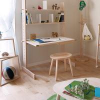 小テーブルにもどうぞ。遊び心のあるデザインなのに、おもちゃっぽくしないのがコサイン。重みも厚みもあり無垢材の頼もしさが味わえます。