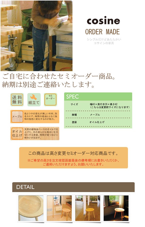 ご希望の高さを注文確認画面最後の備考欄にお書きいただくか、ご連絡いただけますよう、お願いいたします。