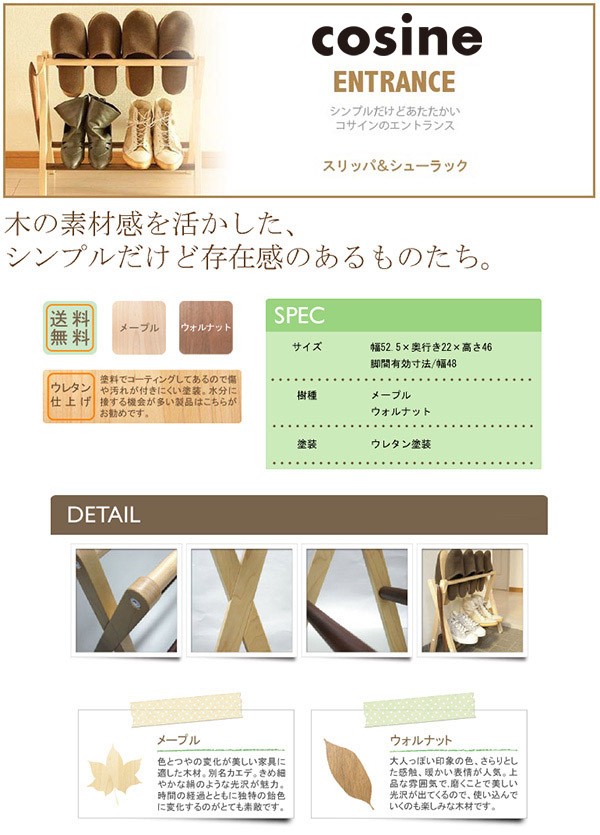 (プレゼント付) コサイン cosine スリッパ&シューラック SR-02CM 木製 おしゃれ 旭川家具