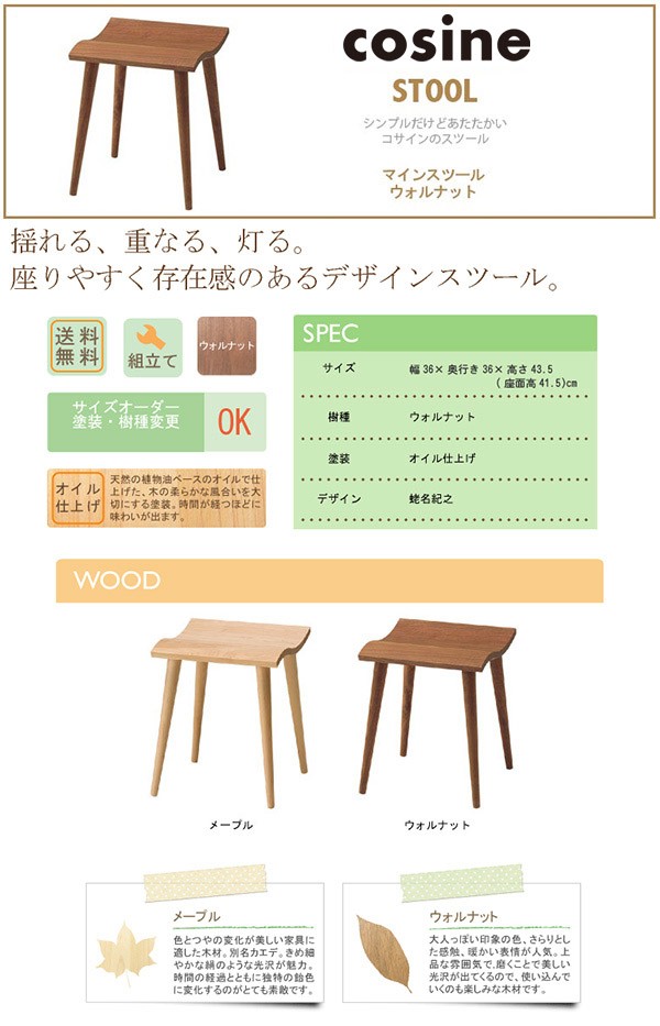 (プレゼント付) コサイン cosine マインスツール ウォルナット ST-02NW 椅子 木製 おしゃれ 旭川家具
