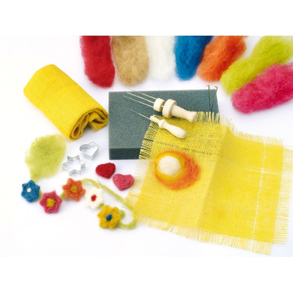 | セット内容 | : | (羊毛)約65g (麻布)40×50cm ドライフェルト針7本 グリップ2種、スポンジ、型抜き |