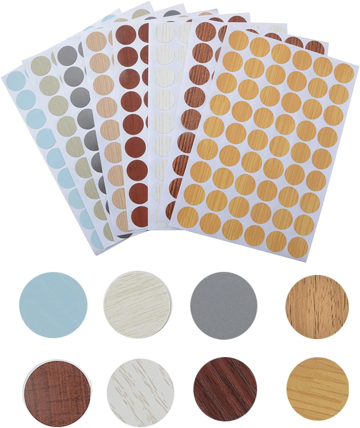 【パッケージ内容】8色のネジ穴ステッカー8枚、合計432枚、直径21mmで、目立たない突き出たネジ穴をカバーします。【高品質素材】PVC素材を使用しており、丈夫で環境に優しく、自己粘着性があり、接着剤不要で、貼り付けが簡単で、剥がれにくく、貼り付け後の家具がより美しくなります。【幅広い適用範囲】ネジ穴と取り付け穴を完全に覆い、木目調の家具、キャビネット、鏡の装飾、棚、ランプの穴、本棚、テーブルの穴、本棚、引き出し、テーブルなどに適しています。【利点】防塵、防湿、防錆、変形しにくい、弾力性が良い、再利用可能、【使い方は簡単】ネジ穴シールをはがして、カバーしたいところに貼るだけ。そのため、家具の小さな欠陥を隠して、家具に新しい外観を与えることができます。
