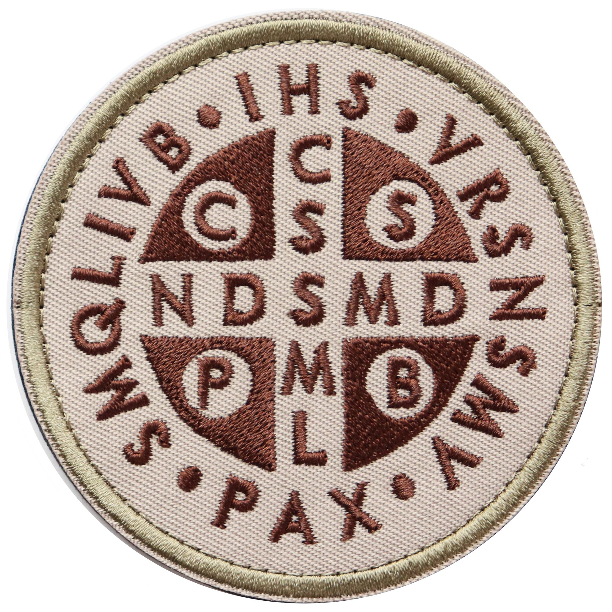 ワッペン 聖ベネディクトのメダイ マジックテープ(ベルクロ・面ファスナー)着脱式 ミリタリー サバゲー 刺繍パッチ(カーキ)