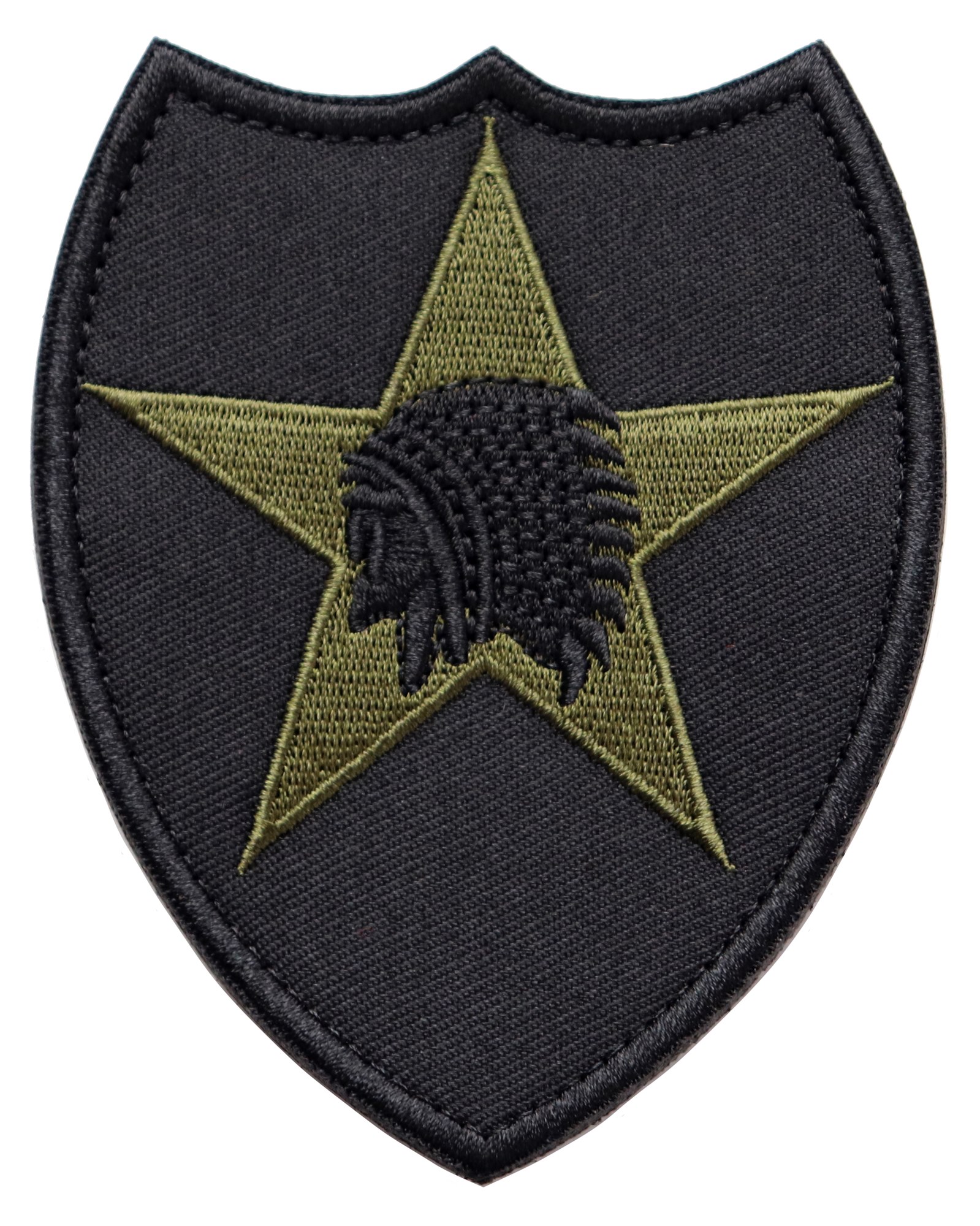 アメリカ陸軍 第2歩兵師団のシンボルマーク「インディアン・ヘッド」をモチーフにデザインした刺繍ワッペンです。