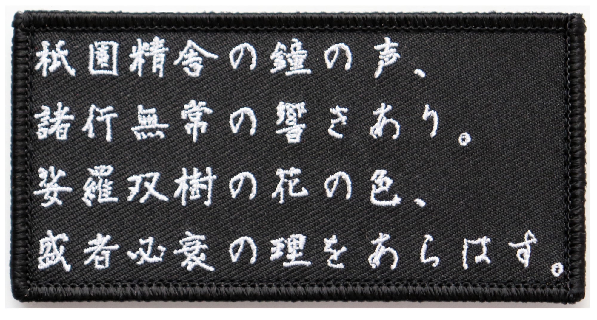 ワッペン 平家物語 〜祇園精舎の鐘の声 諸行無常の響きあり〜 マジックテープ(ベルクロ)着脱式 ミリタリー サバゲー 名言・名文の刺繍パッチ