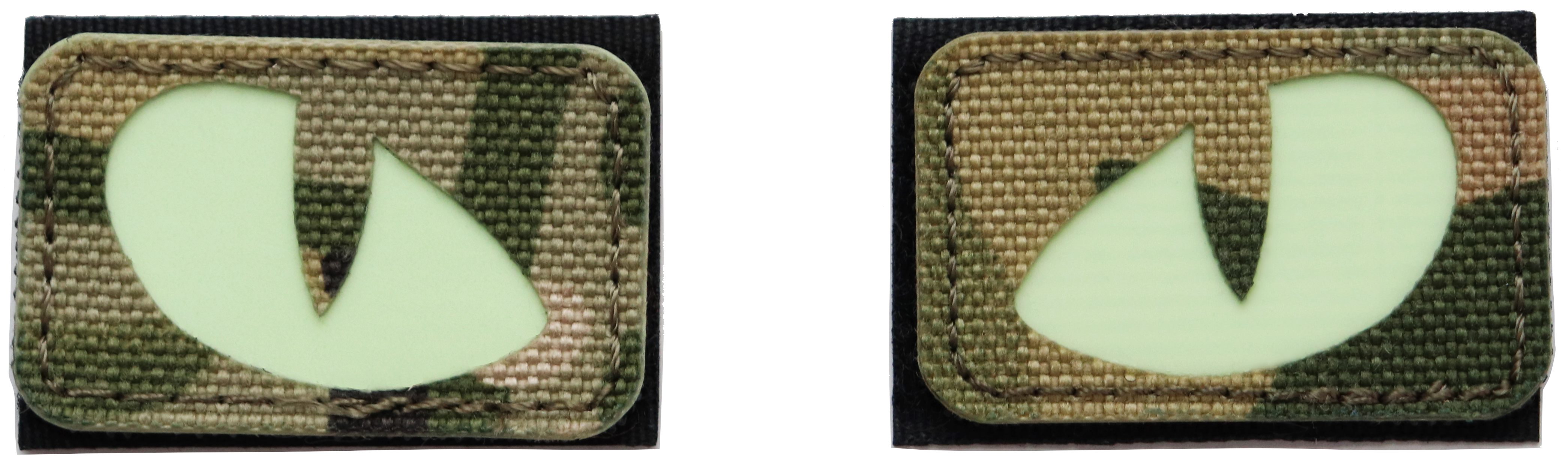 ワッペン 猫の目 左右セパレートタイプ 蓄光・発光素材 マジックテープ(ベルクロ)着脱式 ミリタリー サバゲー ネコの目が光る刺繍パッチ 迷彩柄