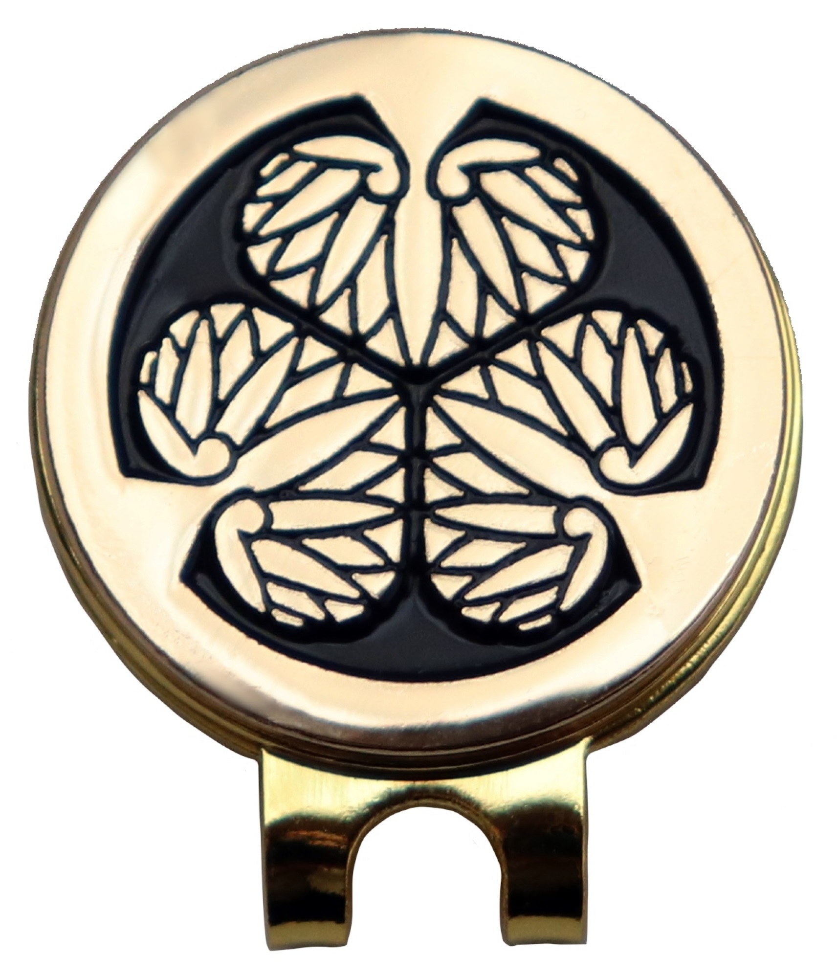 徳川家の家紋(三つ葉葵)をデザインしたゴルフマーカー(ボールマーカー)です。