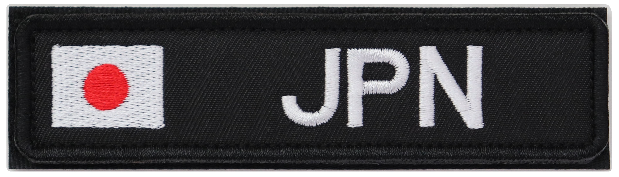 日本の国旗(日の丸)と国名コード「JPN」を刺繍したワッペンです。