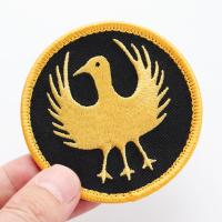 ワッペン 八咫烏(ヤタガラス) マジックテープ(ベルクロ)着脱式 ミリタリー サバゲー 刺繍パッチ 直径7cm 正面