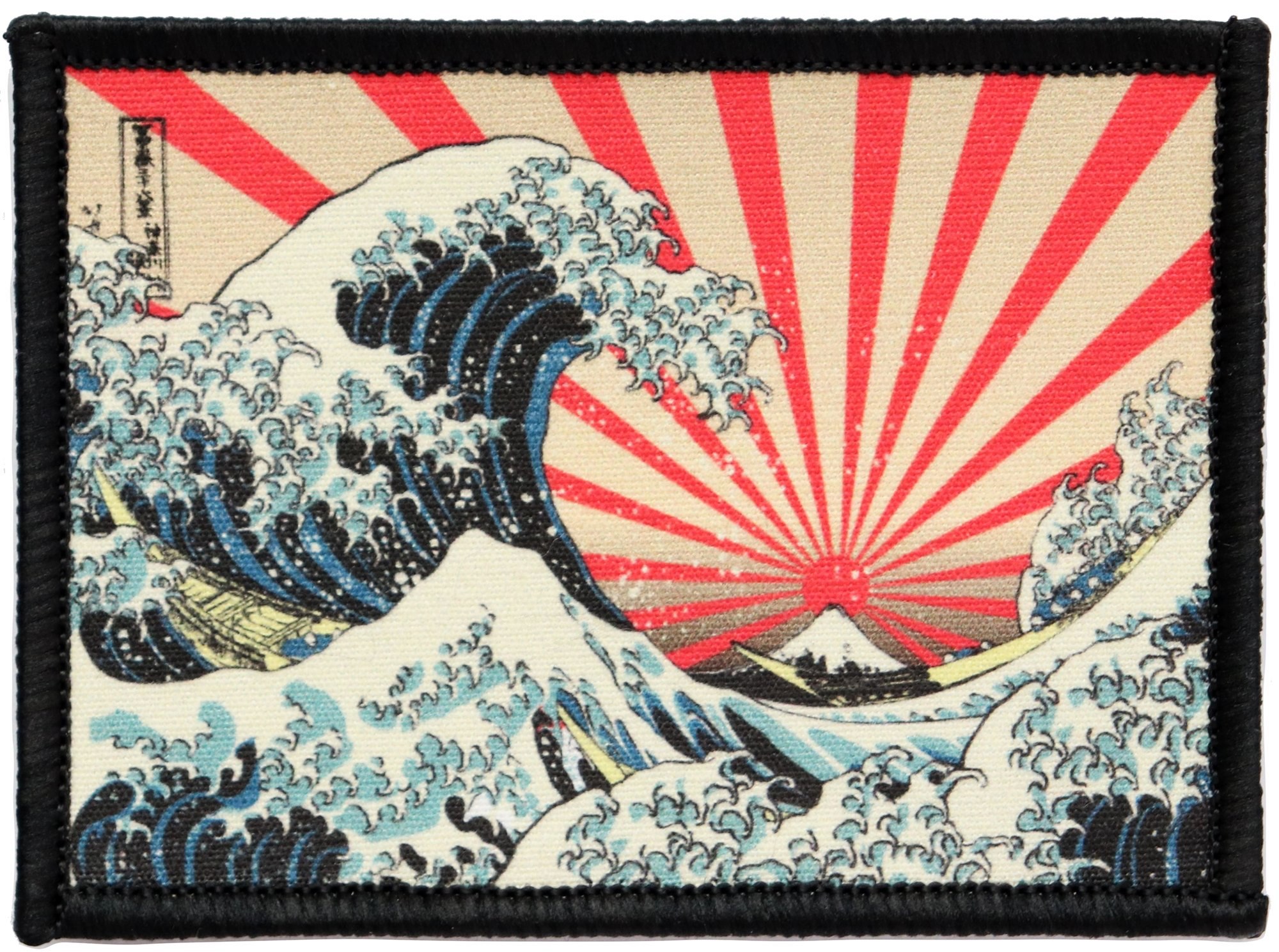 ワッペン 神奈川沖浪裏 旭日×富士 富嶽三十六景 葛飾北斎 マジックテープ(ベルクロ・面ファスナー)着脱式 ミリタリー サバゲー プリント(印刷)パッチ