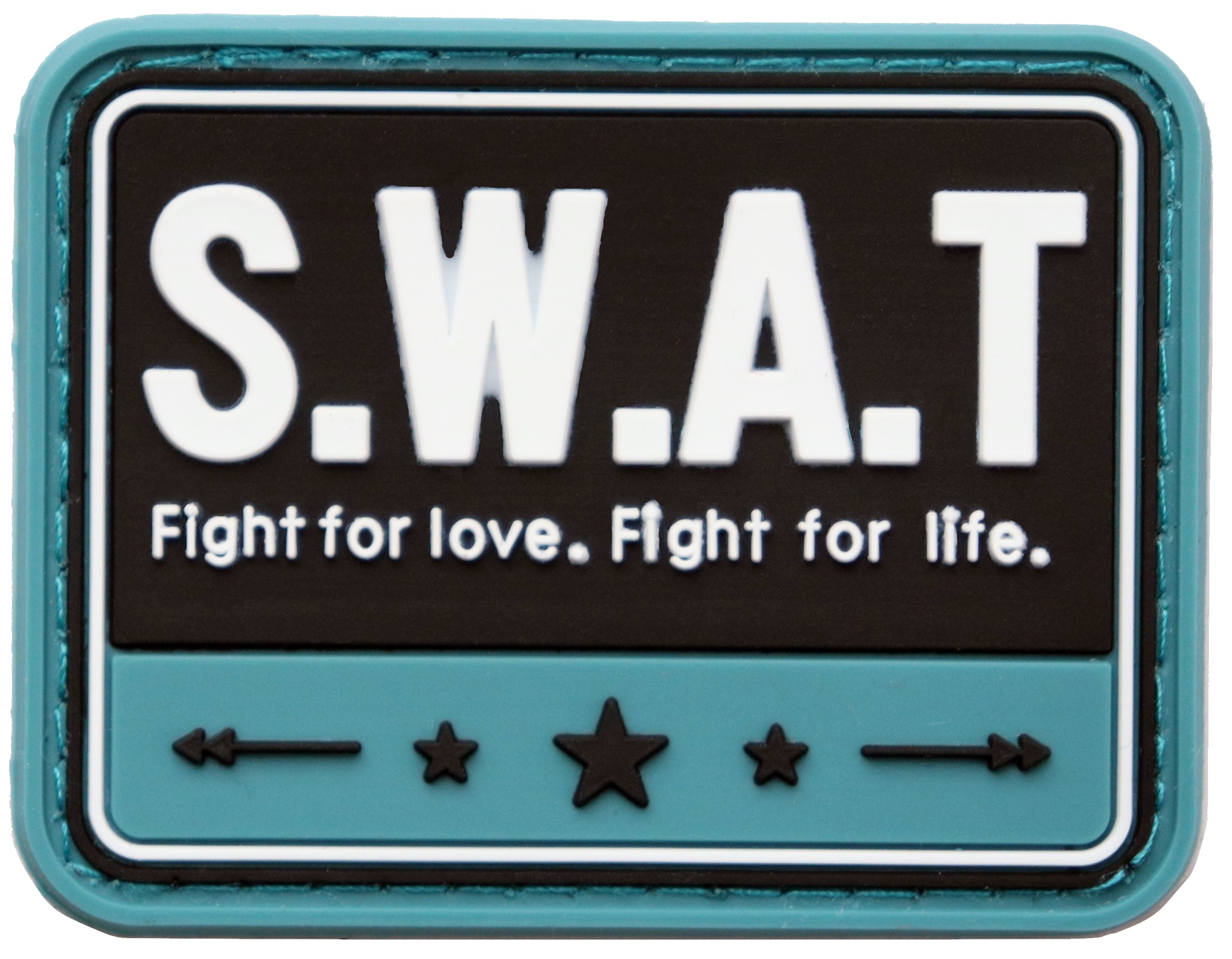 SWATと「Fight for love. Fight for life.」の文字をデザインしたPVCワッペンです。