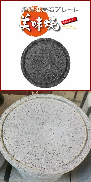 【国産溶岩プレート】美味焼-Umayaki-「囲・グリップセット」30×30cm(溝あり、中央溝は貫通) 価格15,530 円(送料無料) | 【国産溶岩プレート】美味焼-Umayaki-「優丸-29・グリップセット」Ф29×2.2cm (溝あり) 価格 13,880円(送料無料) |