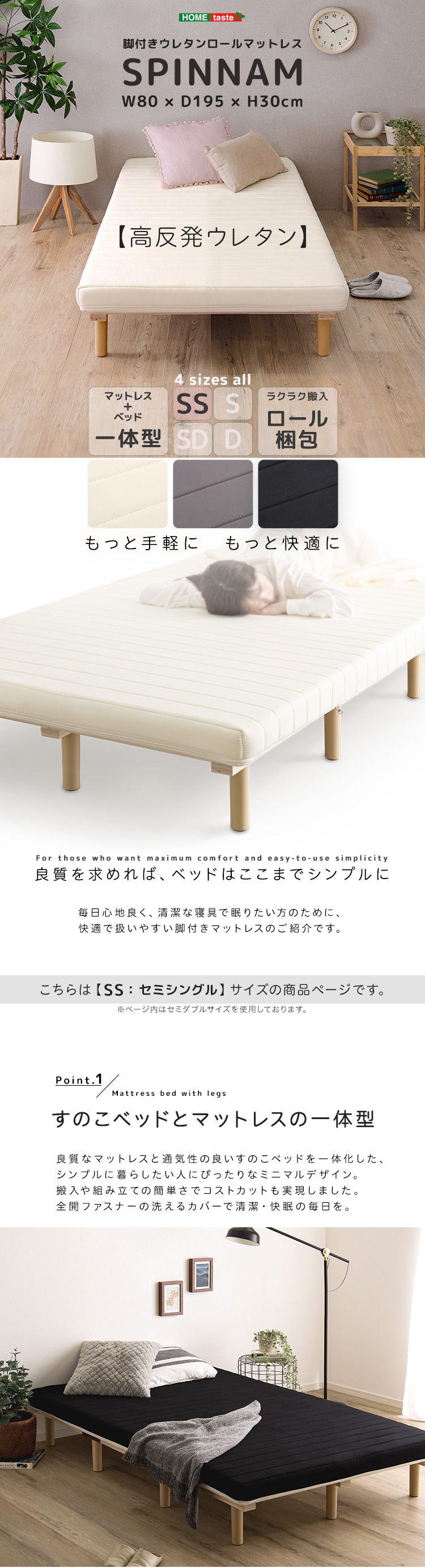 脚付きマットレス ベッド セミシングル 脚付きマットレスベッド 190N 高反発ウレタン マットレスカバー 洗える 足付 セミシングルベッド プエル