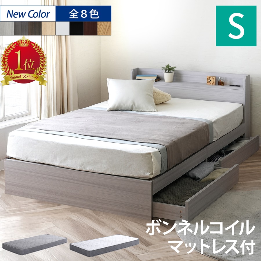 ベッド シングル 収納 ベッド シングル マットレス付き シングルベッド 収納付き ベッドフレーム シングル 宮付き ベッド シングル 白 マットレス付き 黒 引き出し グレー