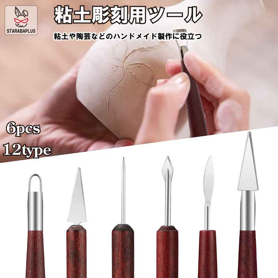 6本セット 粘土彫刻ツール 陶芸道具セット 12タイプ 細工棒 粘土道具 陶芸 粘土ツール DIY手作り造形 粘土細工 彫刻ツール 道具 工具 初心者 陶芸家 送料無料