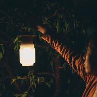スタンド型充電台の上で卓上照明として使用しつつ、キャンプでのランタンと同様いつでも好きな場所に持っていくことができます。