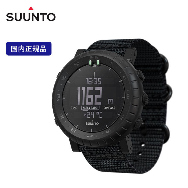 Suunto Core Alpha は、主なアウトドア機能を備えています。堅牢な構造で、快適かつ耐久性の高いテキスタイルストラップ付きです。探検に行く際に便利となる高度計、気圧計、コンパス機能があり、気象情報も提供します。