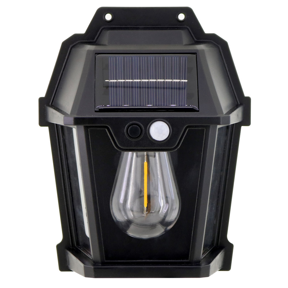 アンティークな雰囲気あるフィラメント電球LED。電池不要、ソーラー充電ライト。3つのモード搭載、人感モード・人感弱点灯モード・常時点灯モード。【仕様】[付属品]粘着シール×1、固定用ネジ×2、ボードアンカー×2[光束]最大約80ルーメン(強点灯)[連続点灯時間]約12時間 ※太陽光にて約10時間充電(晴天時)[センサー反応距離]約3〜5m/110度[センサー反応時の強点灯時間]約20秒