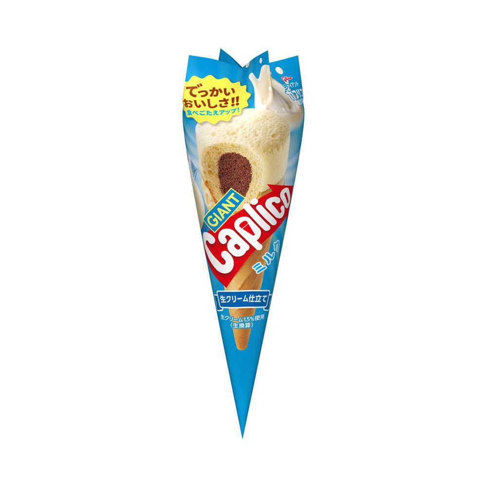 商品説明生クリーム1.5%使用(生換算)の生クリーム仕立て。ミルク味のふんわりエアインチョコスナックです。アイスクリームコーンにエアインチョコが入っている、思わずかぶりつきたくなる形状です。製品の側面に、ときどきミルすけの顔が描かれている「カプリコ占い」つき。1日不足分のカルシウム入りです。