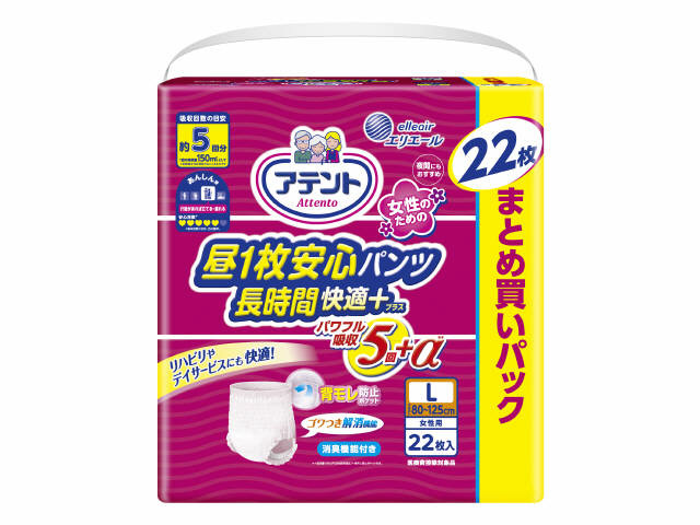 アテント昼1枚安心パンツ長時間快適プラスL女性用22枚