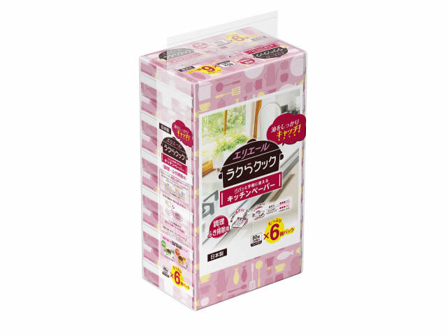 エリエールラクらクックパパッと手軽に使えるキッチンペーパー80W6P