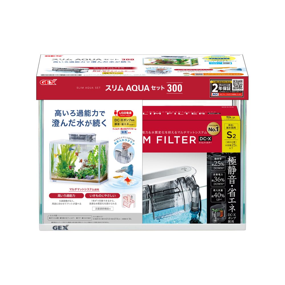 商品説明DC‐Xポンプ採用静音省エネ(自社調べ)なスリムフィルターDC‐XS2付水槽セット