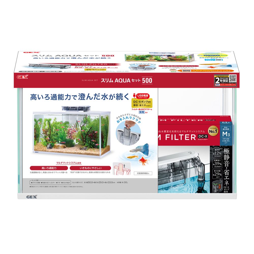 商品説明DC‐Xポンプ採用静音省エネ(自社調べ)なスリムフィルターDC‐XM3付水槽セット