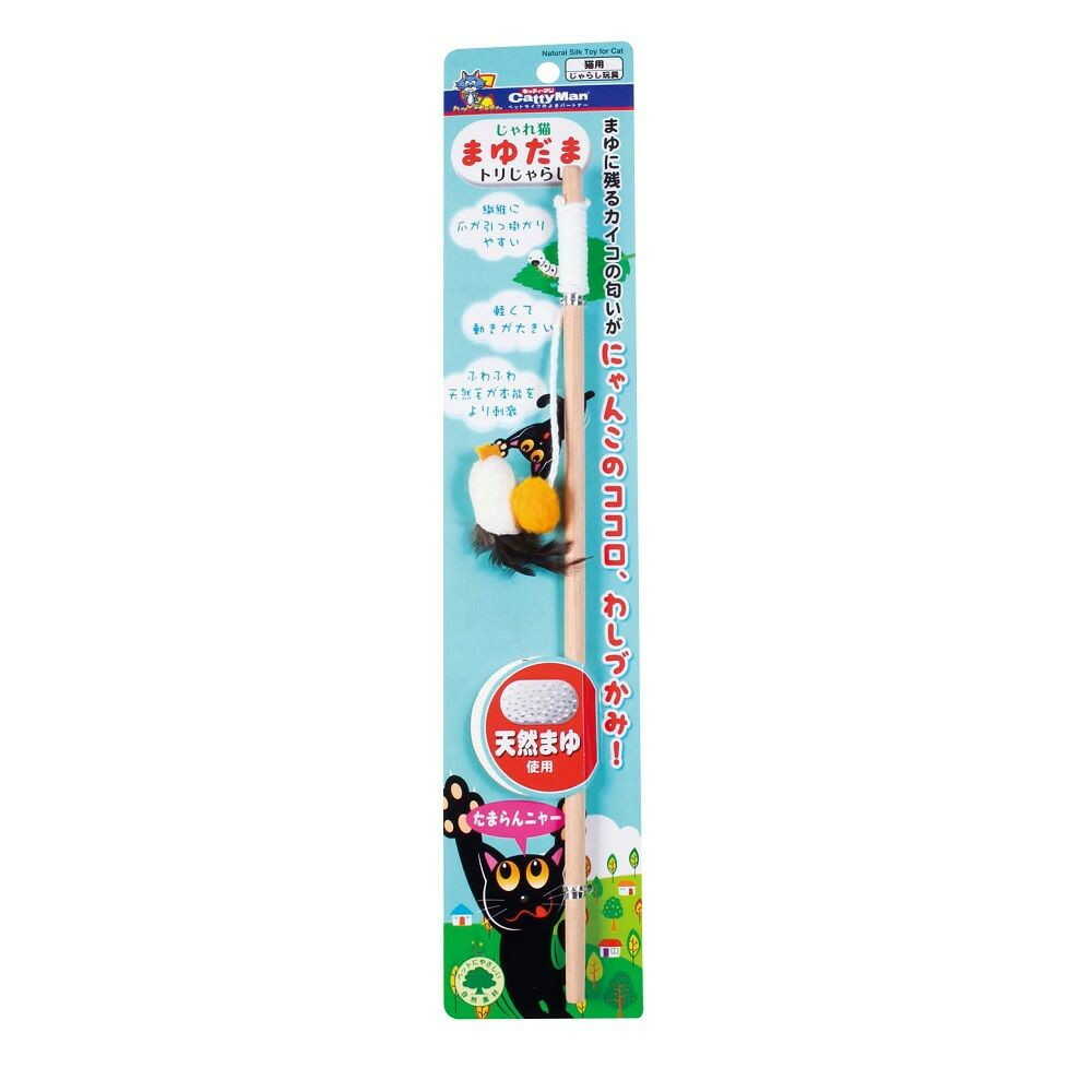 商品説明カイコの匂いが残る天然まゆと、猫ちゃんが大好きな鳥の羽つき。とても軽い天然まゆで、獲物のように予測不可能な動きができ猫ちゃん大興奮。かわいいとりモチーフの猫じゃらしです。
