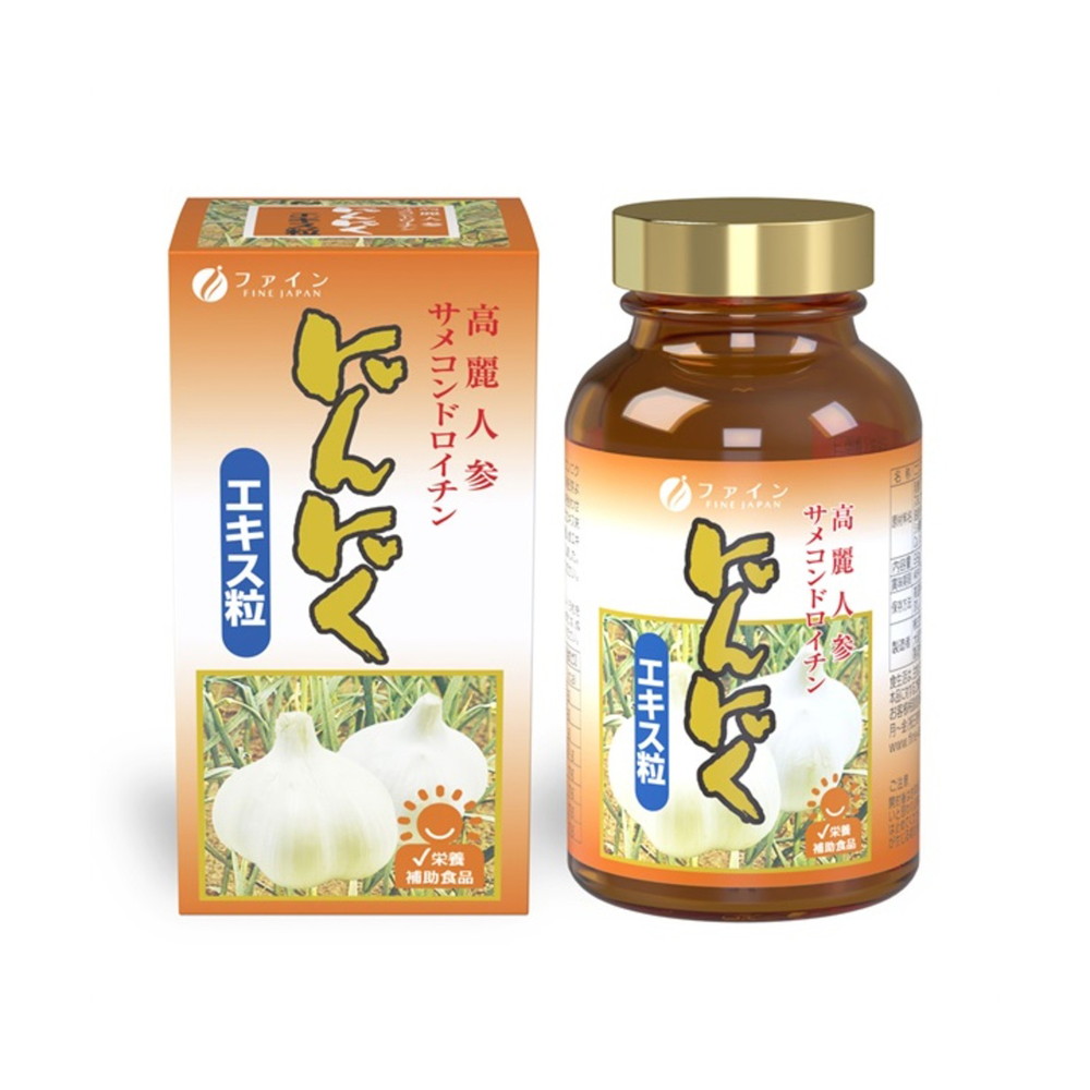 ファインニンニクエキス粒は、ニンニクの球根より得られたエキスと、米胚芽より抽出したビタミンB1、B2、B6を合わせて無臭化した自社開発のニンニクエキス末とサメコンドロイチンさらに、高麗人参エキス末を加えて飲み易い粒状にしました。