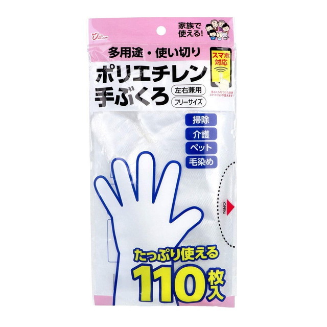 多用途の使い切りタイプ。 家族で使えるポリエチレン手ぶくろ。