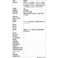 成分・分量その他1瓶(70g)当たり熱量54(kcal) たんぱく質2.4(g) 脂質1(g) 炭水化物8.8(g) 食塩相当量0.1(g) ナトリウム‐(mg)