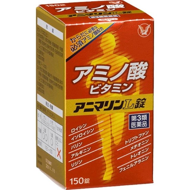 成分/分量2錠中L‐イソロイシン 30mgL‐ロイシン 34mgL‐リジン塩酸塩 37.5mgL‐フェニルアラニン 20mgL‐メチオニン 30mgL‐トレオニン 20mgL‐トリプトファン 10mgL‐バリン 30mgL‐アルギニン塩酸塩 20mgチアミン硝化物(ビタミンB1) 10mgリボフラビン(ビタミンB2) 4mgピリドキシン塩酸塩(ビタミンB6) 15mgトコフェロールコハク酸エステルカルシウム(ビタミンE) 5mgニコチン酸アミド 30mg
