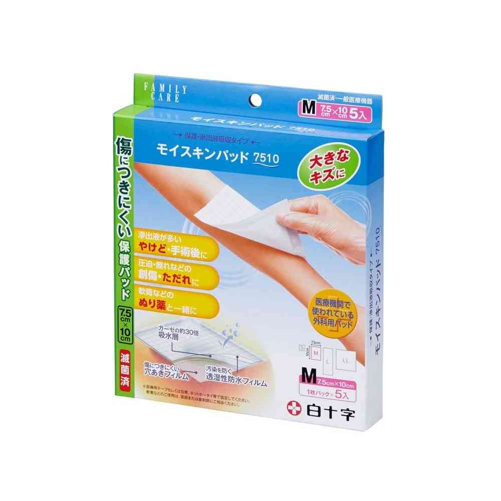 商品説明●傷口につきにくい、高吸収保護パッドです。●医療機関でも使用されている外科用パッドです。●ガーゼの約30倍の吸収層が滲出液を適度に吸収し、創部をやさしく保護します。●パッドは非常に薄いので、創部への圧力を低減します。●透湿防水フィルムにより、表側は内部の湿気を逃がし、外部からの水分・汚物の侵入を防ぎます。●滲出液や汚れの視認性の高い、白色格子模様を採用しています。●創傷側(肌側)は穴あきポリエステルフィルムのため、創に固着しにくく、パッド交換時の使用者の負担を低減します。●粘着剤を使用しておりませんので、パッドの交換がしやすく、創部を清潔に保ちます。●創傷部が乾燥しないように、必要に応じて軟膏等を併用することが可能です。●軟膏のご使用には医師または薬剤師にご相談ください。●一枚ずつ滅菌されているので傷口にも安心です。また、持ち運びにも便利な個包装タイプです。●パッドサイズ:7.5cm×10cm●脱水保水量:8ml●試験検体を生理食塩水に5分間浸漬した後、3分間脱水し、重量を測定した。吸水前と吸水後の重量差から脱水保水量(g)を算出し、脱水保水量(ml)に変換した。
