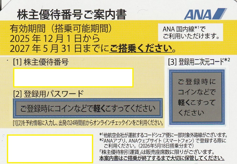 ANA (全日空)株主優待番号ご案内書(ANA国内全路線で利用可)