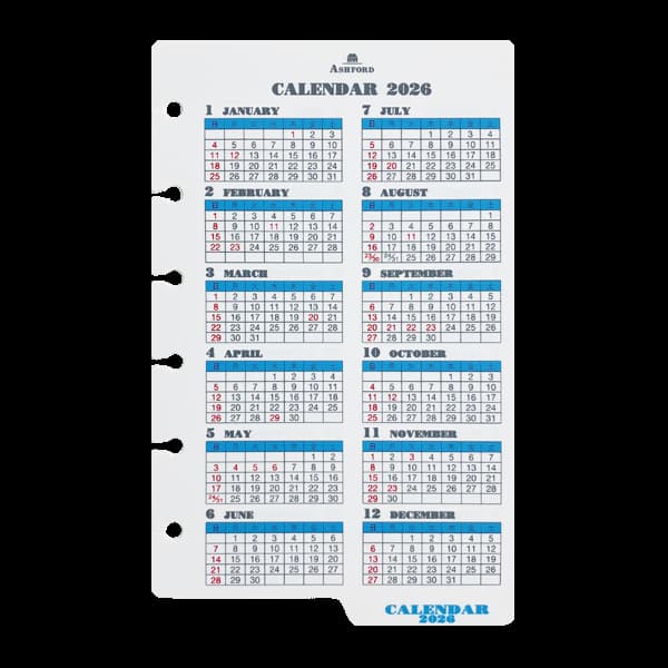 2026年度 ASHFORD MINI6 ダイアリー リフィル 0026-026 カレンダーリフター (ホワイト) ミニ6 システム手帳 日付入り アシュフォード