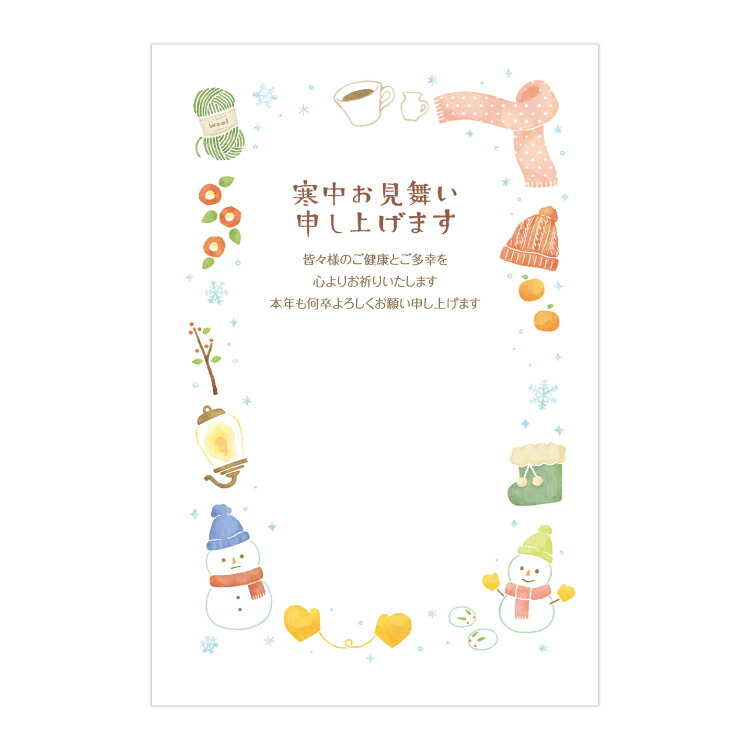 かわいいイラストと挨拶文が印字された寒中はがきです。