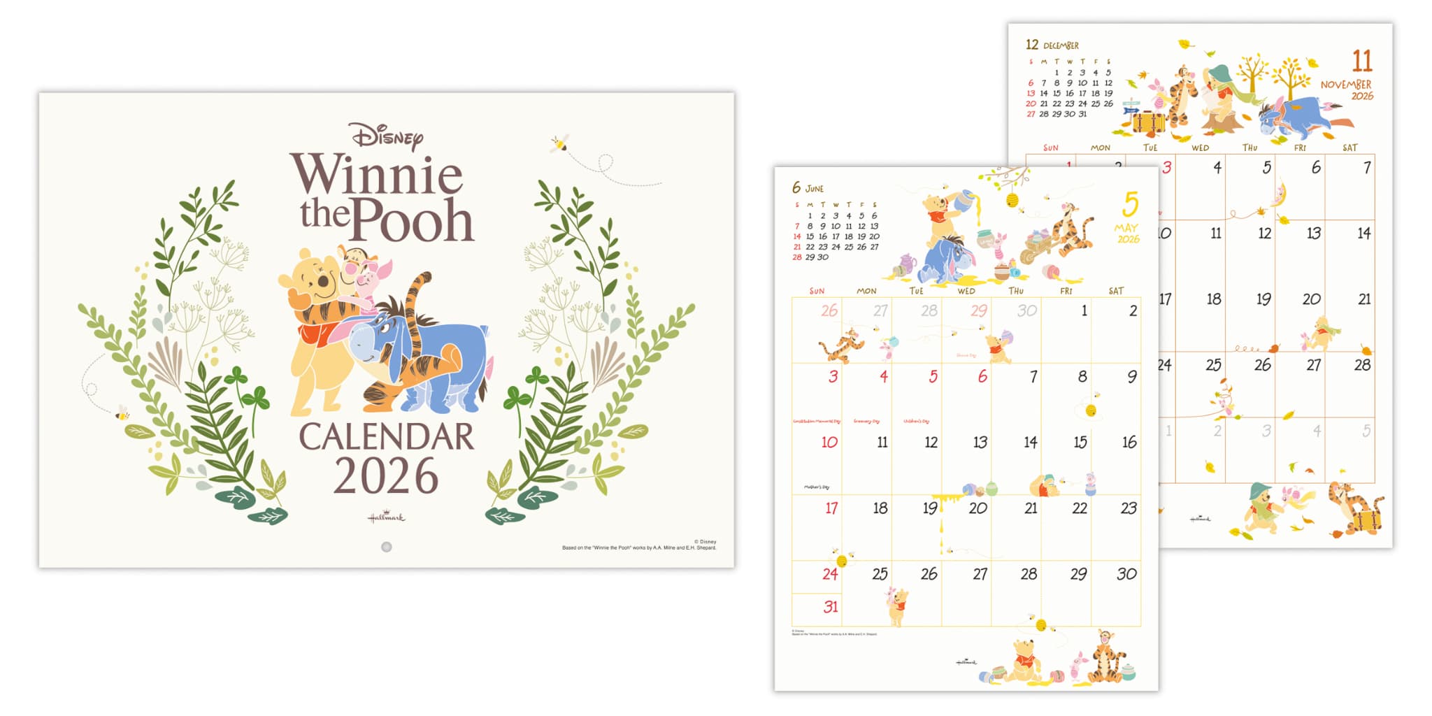送料無料 2026年度カレンダー 壁掛け L 二つ折りカレンダー大 ディズニー くまのプーさん 845353 日本ホールマーク 令和8年 日曜始まり キャラクター かわいい