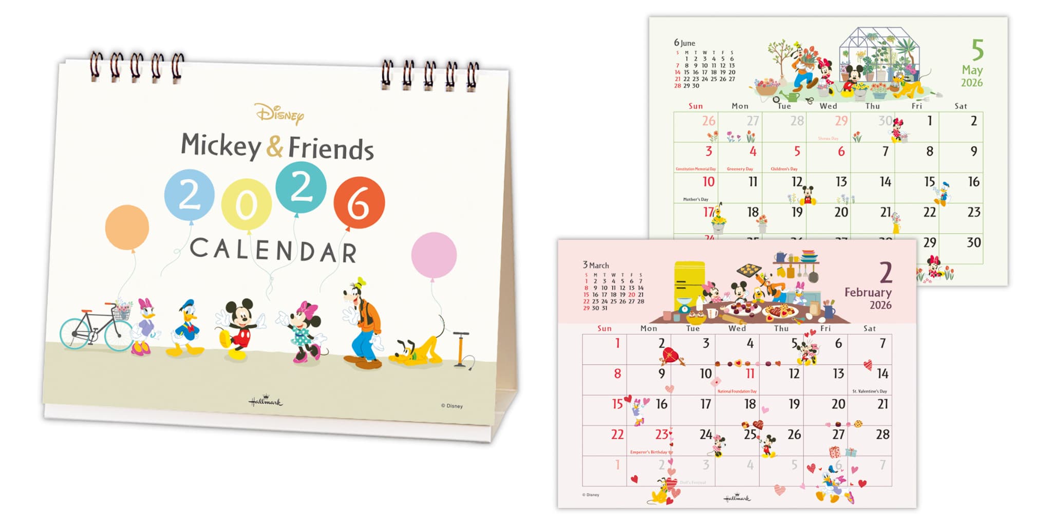 2026年度カレンダー 卓上 ディズニー ミッキー 845476 日本ホールマーク 令和8年 日曜始まり キャラクター ミッキーマウス ミニーマウス ミキミニ かわいい