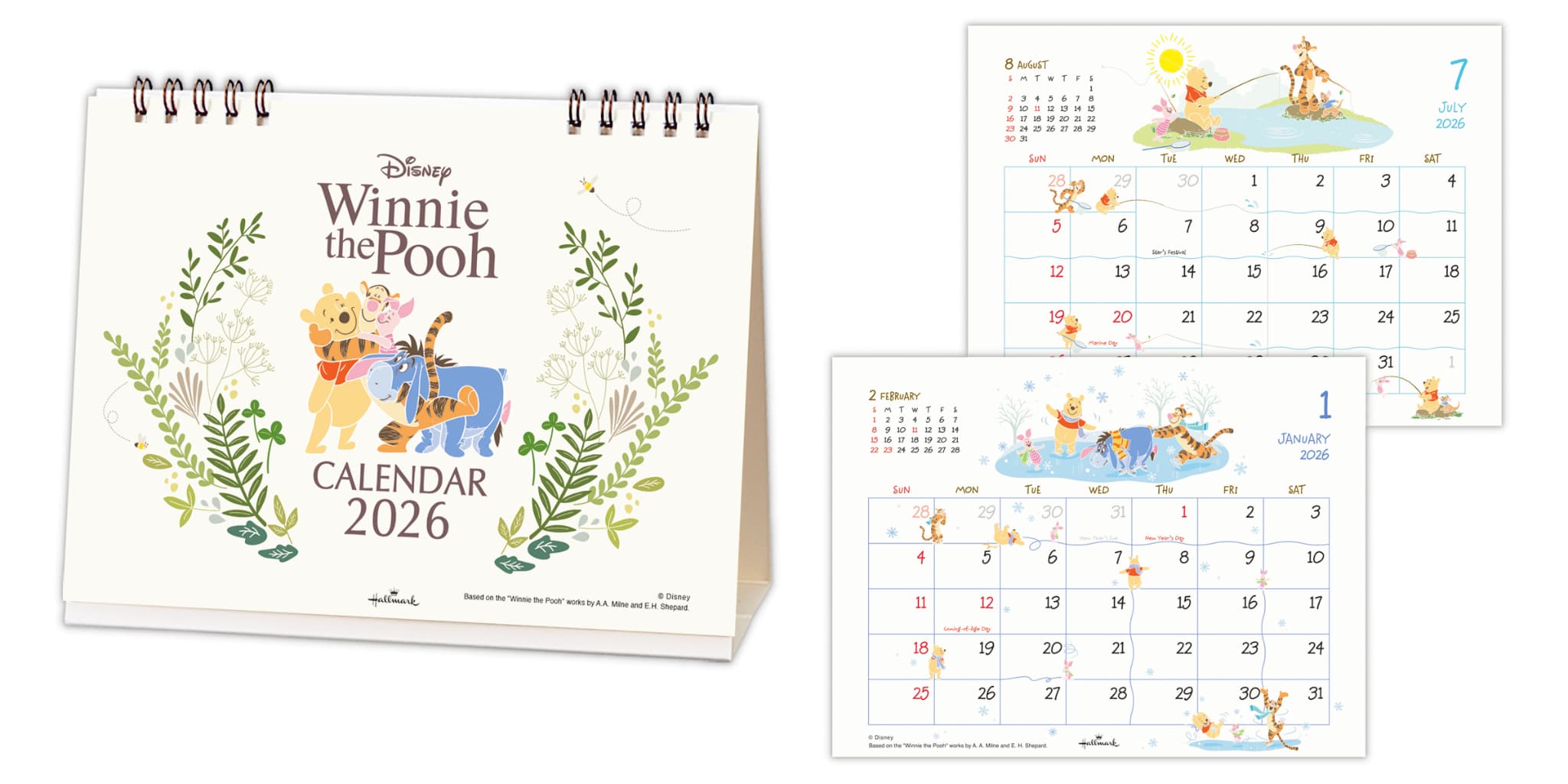 2026年度カレンダー 卓上 ディズニー くまのプーさん 845483 日本ホールマーク 令和8年 日曜始まり キャラクター かわいい