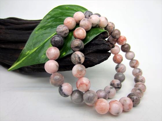 訳あり 均一ブレスレット ピンクゼブラジャスパー着色 Φ8.2±0.2mm