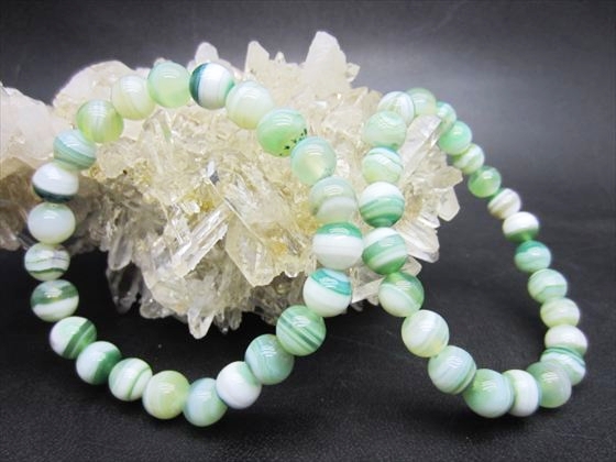 均一ブレスレット ミルキーグリーン縞メノウ 熱処理 Φ8.2±0.3mm