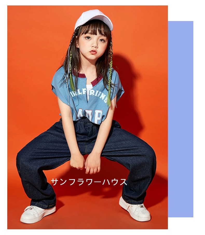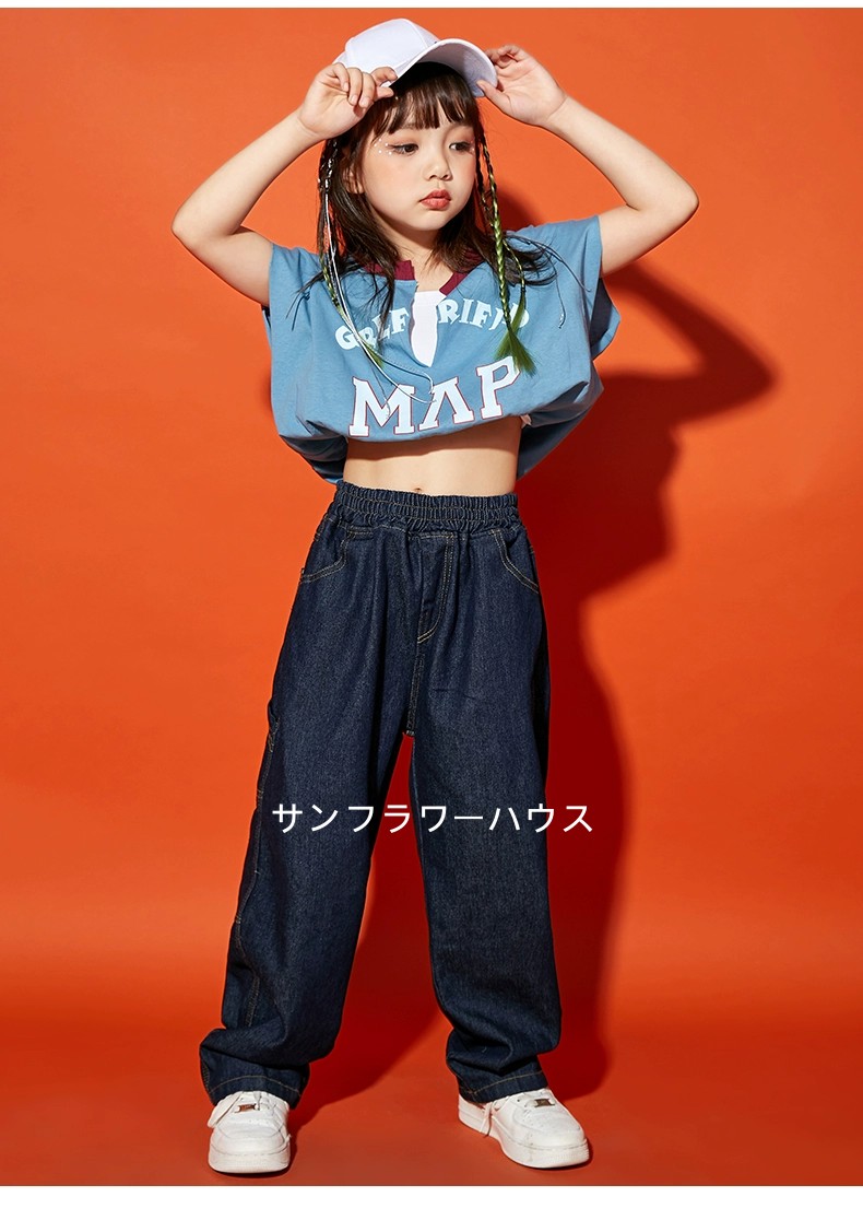 キッズダンス衣装 セットアップ 女の子 男の子 ダンスウェア tシャツ ショットパンツ デニム半ズボン 長ズボン ヒップホップ 子供服 ダンス衣装 hiphop