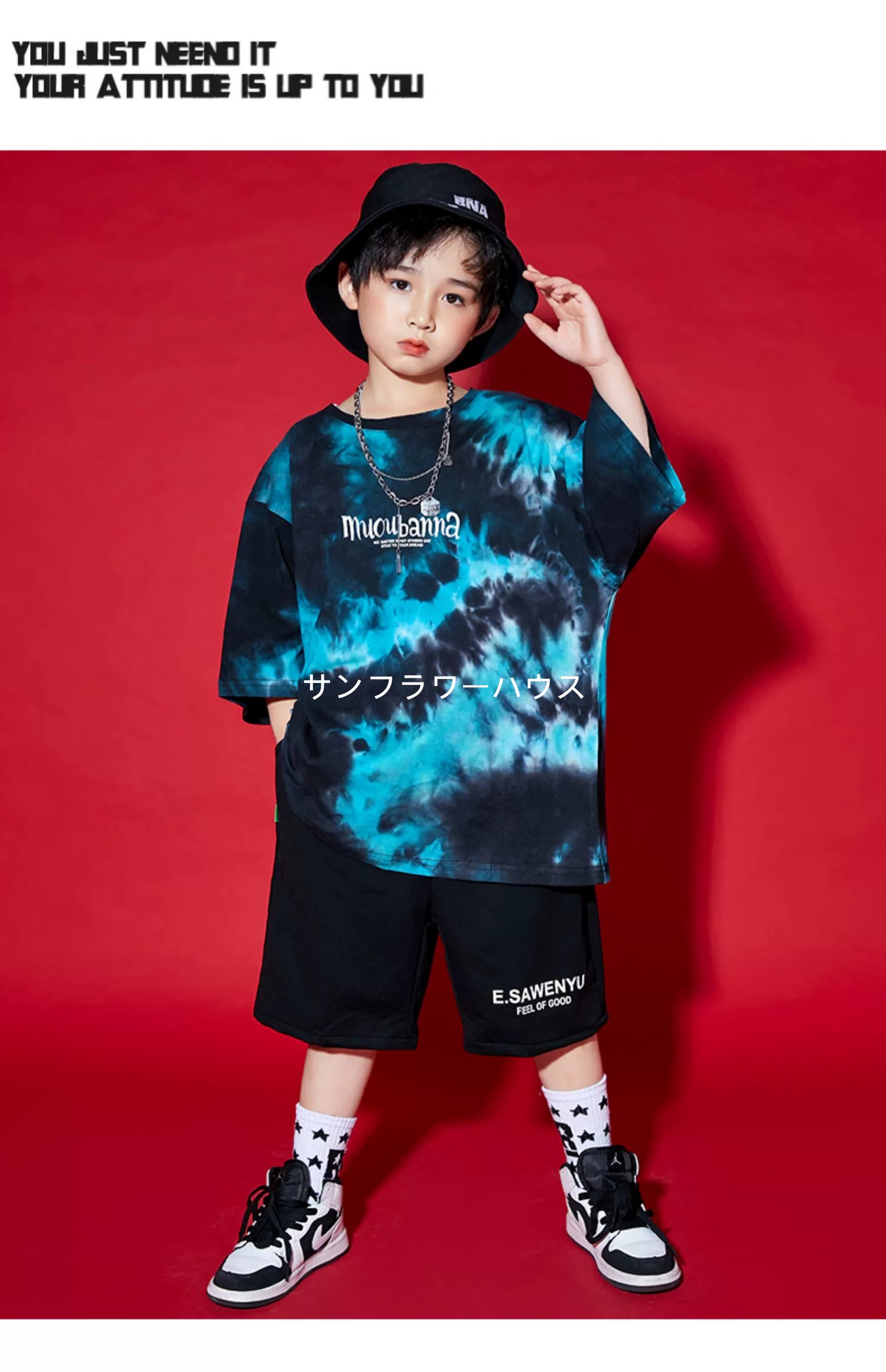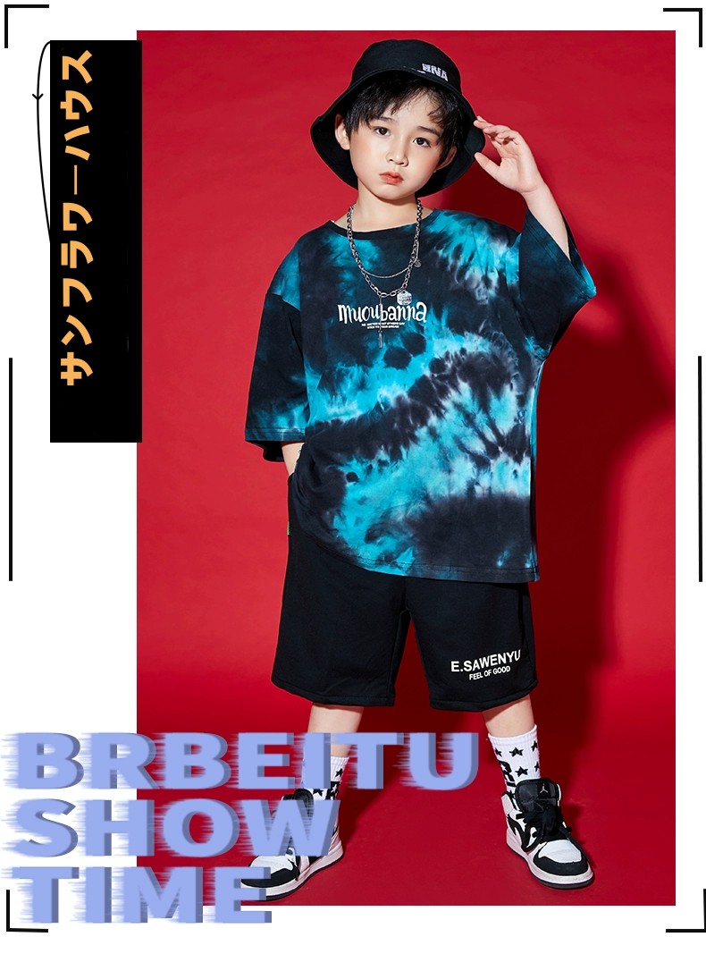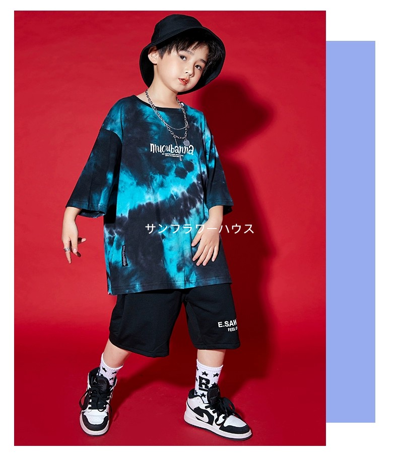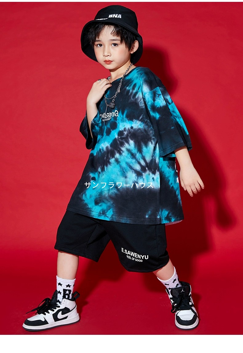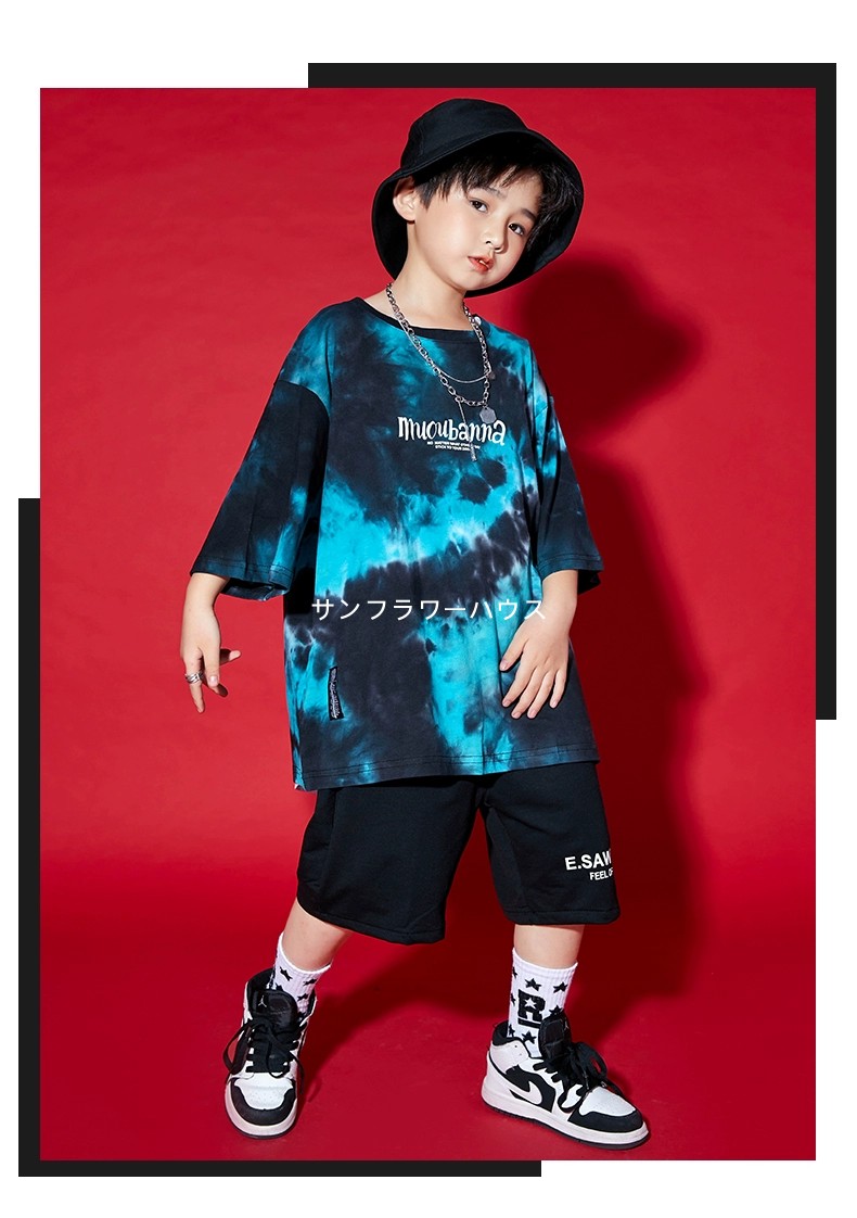 キッズダンス衣装 ワケあり 割引き 絞り染め風 黒系 タイダイ柄 ジャズダンス ヒップホップ 半袖Tシャツ 男の子 女の子 130-170 練習着 演出服 ※画像確認※