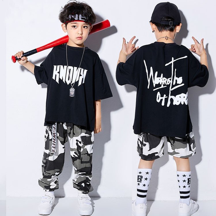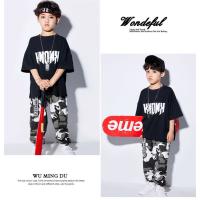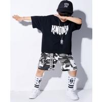 キッズ ダンス衣装 ヒップホップ 子供 HIPHOP 男の子 女の子 迷彩柄 Tシャツ 迷彩パンツ ダンストップス ジャズダンス 体操服 ステージ衣装 練習着