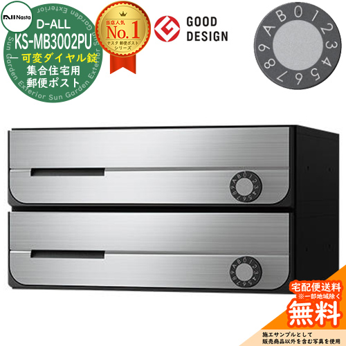 ポスト 郵便受け D-ALL 集合住宅用ポスト KS-MB3002PU-2LK 可変ダイヤル錠 前入れ前出し 2戸用 キョーワナスタ 壁付けポスト