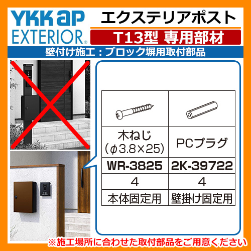 郵便ポスト ポストT13型専用部材 壁付け施工 ブロック塀用取付部品 YKK エクステリアポストシリーズ 壁付けポスト 施工用部材