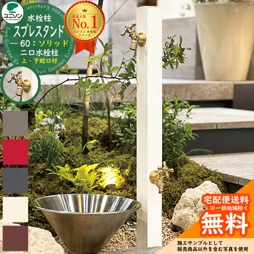 水栓柱 立水栓 スプレスタンド60ソリッド 左右仕様 蛇口2個セット(ゴールド) ガーデンパン別売 ユニソン Spre スプレスタンド60ライト 後継モデル 二口水栓柱
