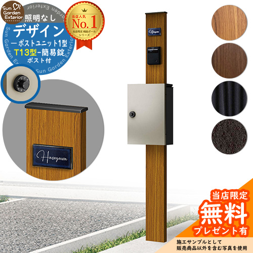【無料★特典付】機能ポール デザインポストユニット 1型 照明なし本体 T13型ポスト(簡易錠) セット YKK シンプレオポストユニット 比較品 鍵付き 門柱
