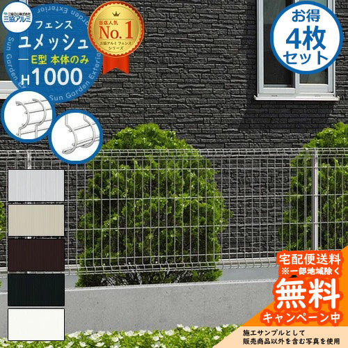 《お得!4枚セット》スチールフェンス 囲い ユメッシュE型 H1000タイプ 呼称:2010 フェンス本体のみ 三協アルミ フリー支柱タイプ PYD-E-F