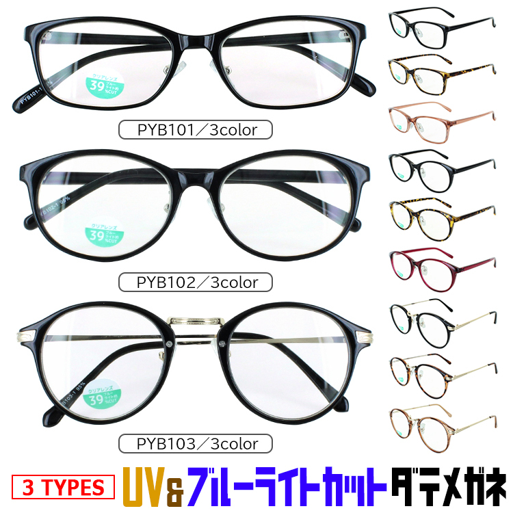 ブルーライトカット メガネ レディース メンズ ブルーライトカット眼鏡 度なし UVカット 伊達メガネ PYB101 スクエア PYB102 ボストン PYB103 コンビフレーム